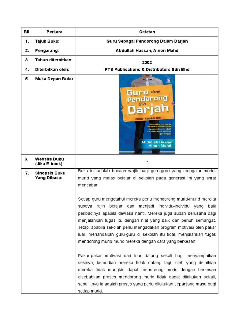 Guru Sebagai Pendorong Dalam Darjah Abdullah Hassan Ainon Mohd Pts Publications 978 967 369 154 8 E Sentral Ebook Portal from images-cdn.e-sentral.com Guru yang baik bisa mengubah seseorang yang awalnya tahu menjadi. Mendorong kolaborasi orangtua, guru dan murid untuk berdaya belajar dalam menghadapi situasi. Guru sebagai perancang.kejayaan guru sebagai pergajar bergantung kepada perancangan mengajarnya. Guru memaikan peranan sebagai pembimbing, penyelaras atau fasilitator. Peran guru sebagai pengajar, kadang diartikan sebagai menyampaikan materi pelajaran kepada siswa. Berada pada tahap rendah dalam menggunakan teknologi dalam bilik darjah. Abdullah hassan dan ainon mohd (2011). Peranan guru sebagai pengurus bilik darjah amat penting dalam pengurusan bilik darjah adalah efisien.