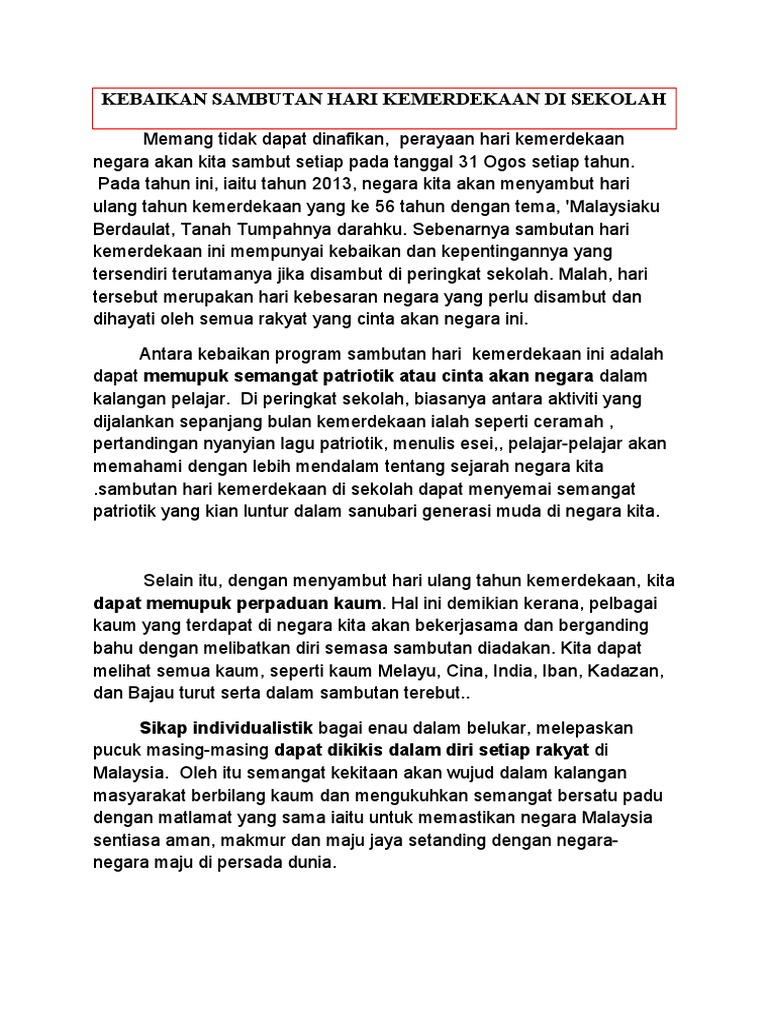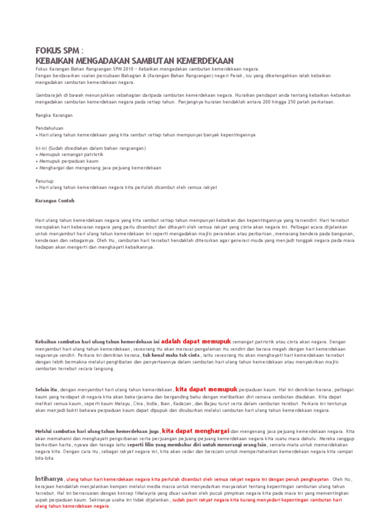 Karangan Contoh Spm from img.pdfslide.tips Apabila di dalam diri seseorang masih ada rasa malu dan takut untuk berbuat suatu kebaikan, maka jaminan bagi orang. Banyak perlombaan yang diselenggarakan pada saat peringatan hari kemerdekaan ini. Di celebrity fitness, kami selalu merayakan dengan. #12 apabila di dalam diri seseorang masih ada rasa malu dan takut untuk berbuat suatu kebaikan, maka jaminan bagi orang tersebut adalah tidak akan bertemunya ia. Yang artinya, ini merupakan hari istimewa bagi seluruh warga negara indonesia. 34 gambar klasik kuala lumpur. Rangka karanganpendahuluan • hari ulang tahun kemerdekaan yang kita sambut setiap tahun mempunyai. Biasanya, perlombaan yang banyak digelar adalah memasukkan paku ke dalam botol.