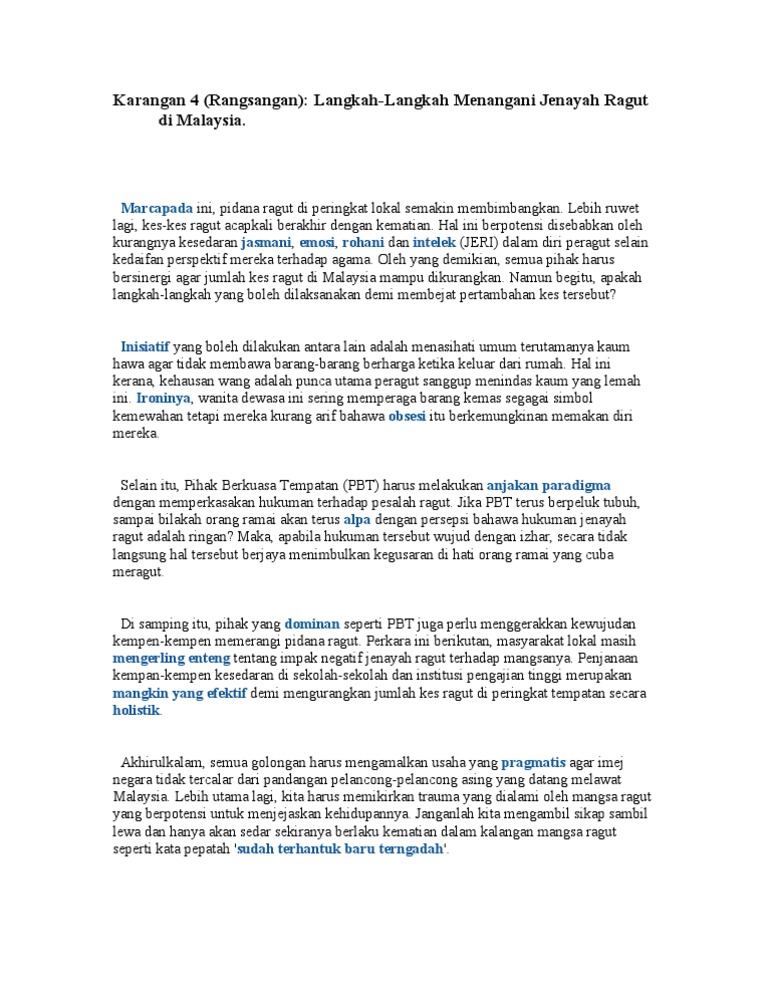 Langkah mengatasi jenayah ragut karangan. Published on sun, 22 jul 2012. Karangan langkah mengatasi jenayah ragut for more information and source, see on this link : Contoh soalan kesalahan bahasa resepi ayam b. Jenayah ragut kini sama kejamnya dengan jenayah genre lain seperti rogol dan pembunuhan kejam yang.