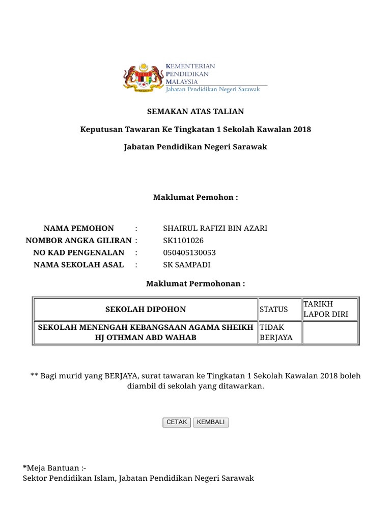 Related : Permohonan Sekolah Kawalan 2018 Tingkatan 1 - Permohonan boleh dibuat secara online mulai 1 november 2018 sehingga 16 disember 2018..