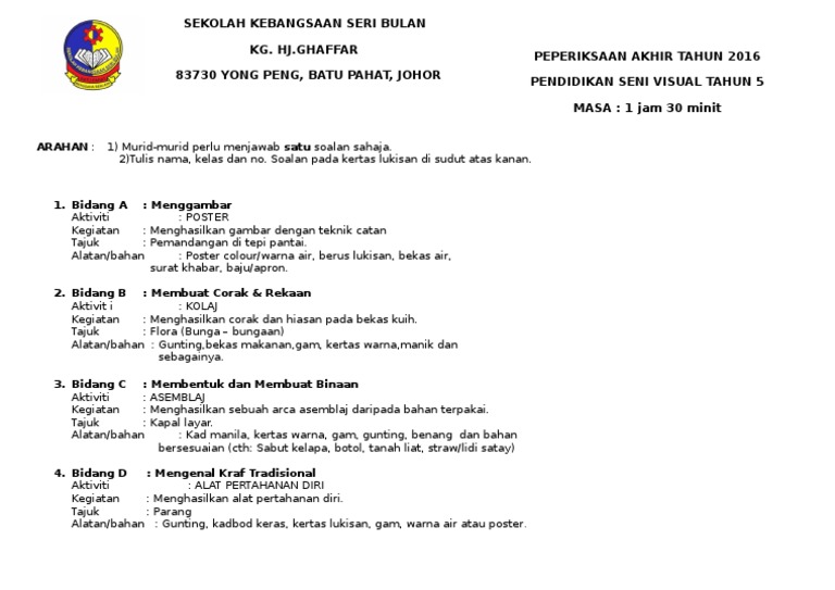 Himpunan soalan peperiksaan akhir tahun 2018 darjah 5 semua subjek ini merupakan hasil carian kami di website pendidikan sistem guru online. Soalan peperiksaan akhir tahun 2018 darjah 5 subjek pendidikan kesihatan ini satu perkongsian dari cikguayu bagi meringankan beban para guru membuat set soalan peperiksaan akhir tahun atau latihan untuk murid. For more information and source, see on this link : Latihan soalan online matematik tahun 5 (1) latihan soalan online matematik tahun 5 (2) latihan soalan online matematik tahun 5 (3) latihan soalan online matematik tahun 5 (4). Sains tahun 1 pksr 1 kertas 2 2017 via www.slideshare.net.